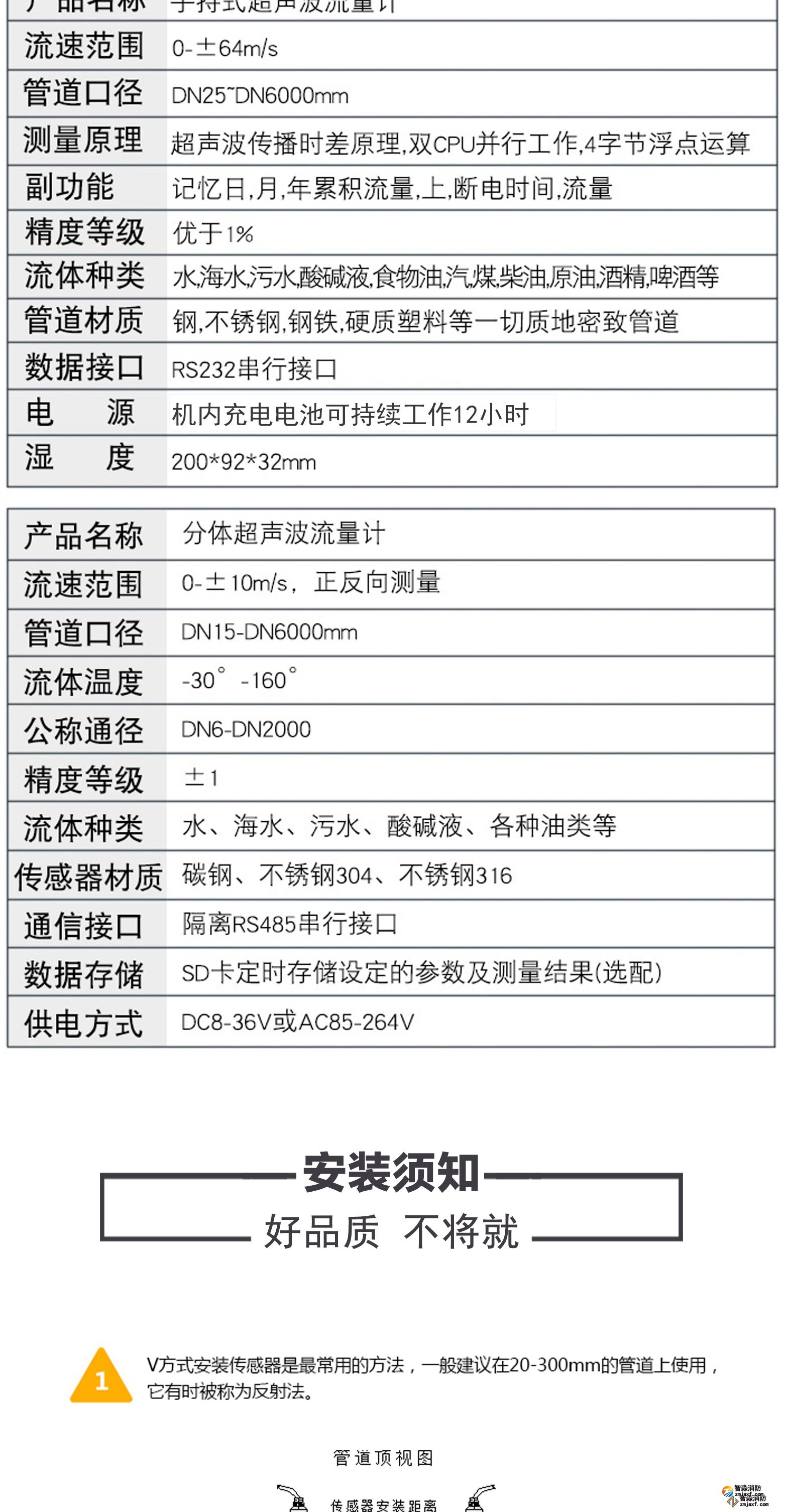 介质种类 | 水、海水、污水、酒精、各种油类等能传导超声波的单一、均匀、稳定的液体 | ||||